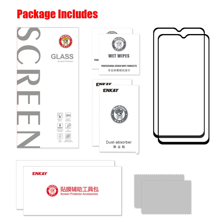 2 PCS ENKAY Hat-prince Full Glue 0.26mm 9H 2.5D Tempered Glass Film for