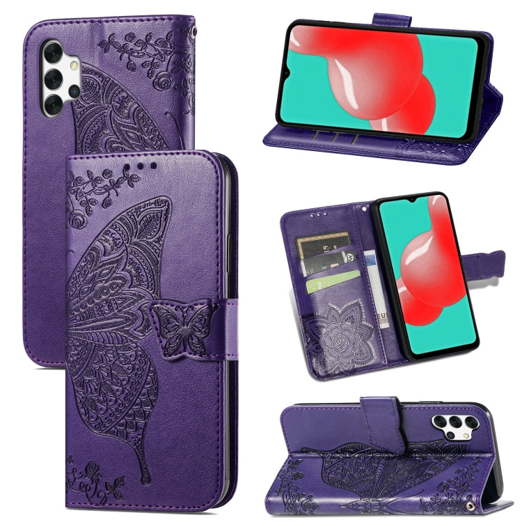 Butterfly Love Flower Embossed Horizontal Flip Leather Case with Bracket / Card Slot / Wallet / Lanyard