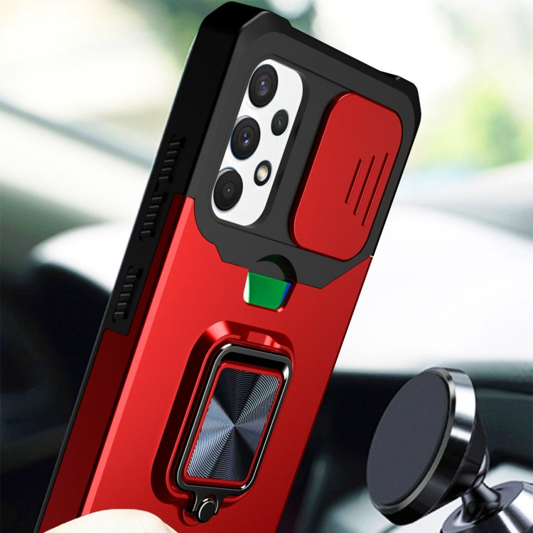 Sliding Camera Cover Design PC + TPU Shockproof Case with Ring Holder & Card Slot, For Samsung Galaxy A32 4G